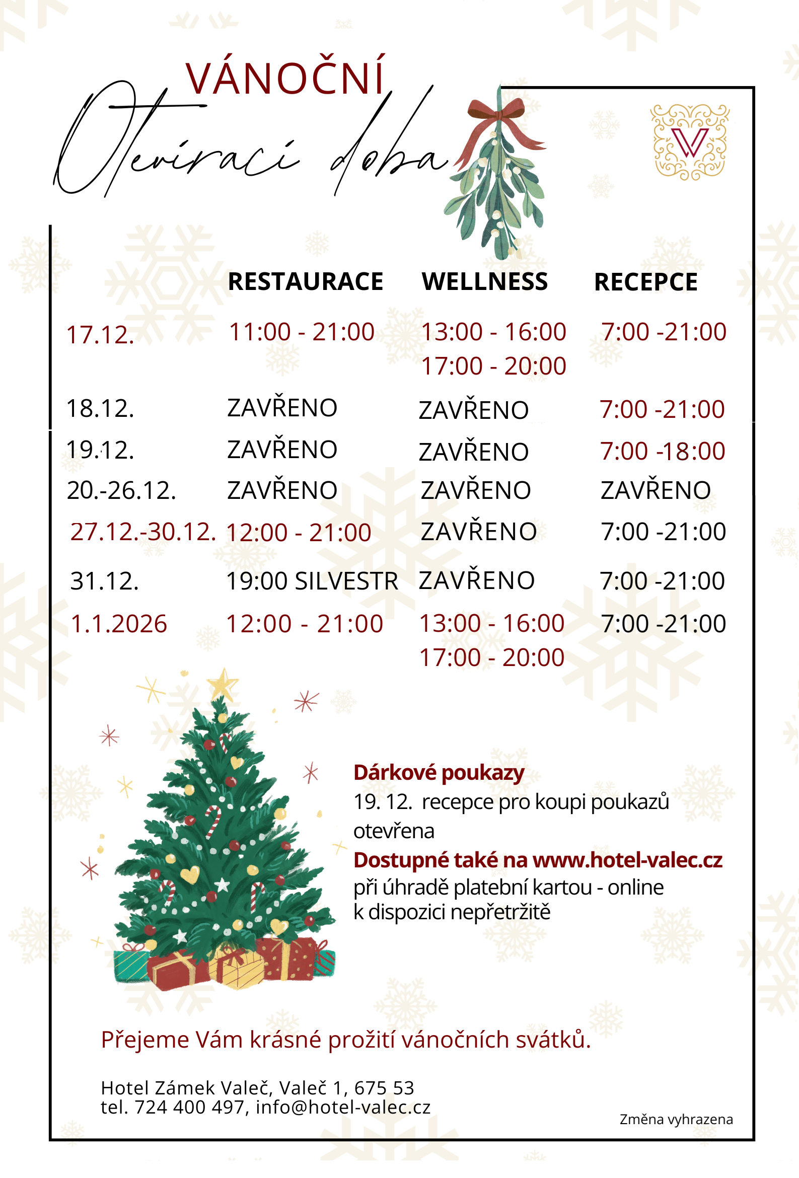 Otevírací doba - Vánoce 2025